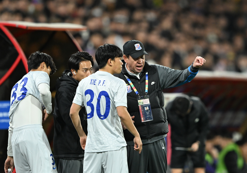 宏泰证券上海申花队主补助斯卢茨基在场边带领