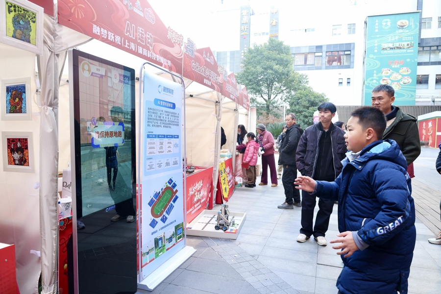 2026年徐汇“文明大市集”暨“新春好市”国风主题市集也于1月24日鸣锣开市。现场五大展区涵盖文创展示、非遗体验、健康文体、春节好物及文明宣传等内容,共设50余个市集摊位。前来“逛大集”的市民游客可与米哈游《原神》中的人物“派蒙”近距离互动,挑选上海京剧院最新开发的京剧周边和公益文创,还可与AI体育锻炼屏、AI智能魔镜互动并检测健康指标。