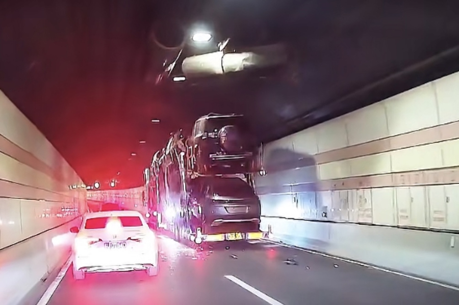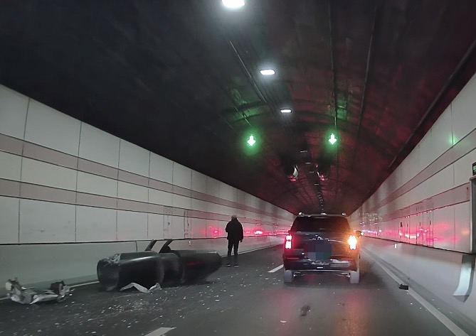 万德资本 超高运输车闯入军工路隧道,撞落顶部风机
