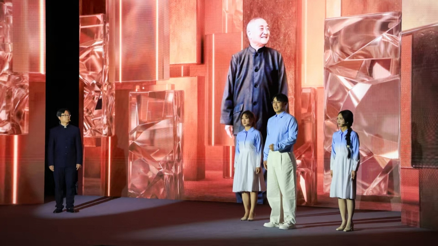 中国职业教育之父黄炎培借助AI技术“走上”大屏幕与其曾孙及职教学生“对话”