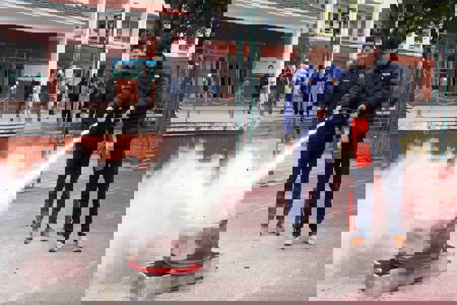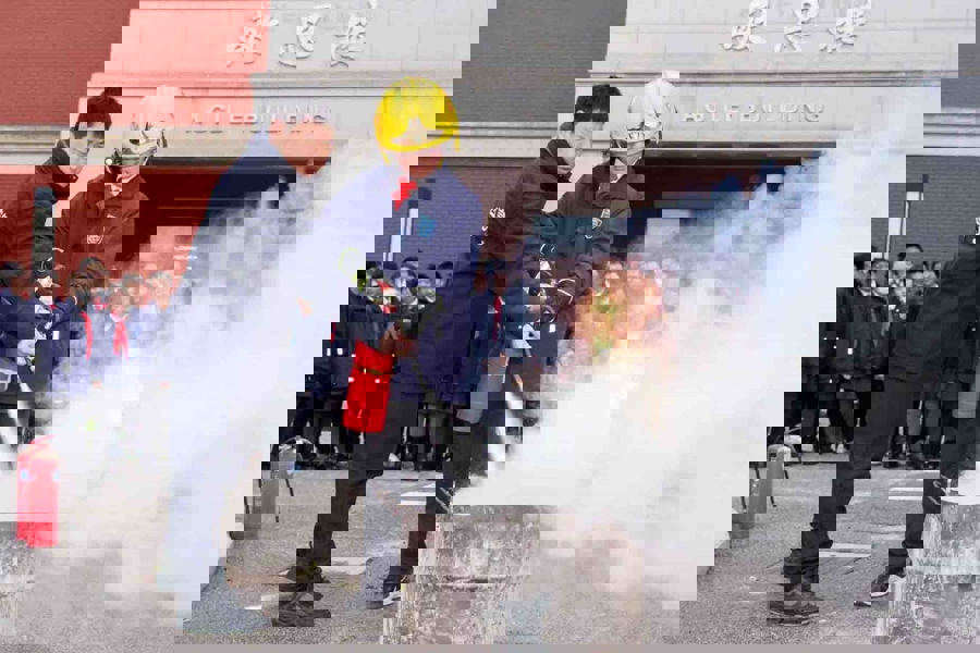 九点半,跟着救急警报响起,“开学第一课”着重拉开序幕。各班学生在救急宣传员和班主任的有序一样下,按照预定疏散阶梯,快速撤退到操场指定安全区域。随后,消防员向公共熟习并演示熄灭器的使用方法,并在现场建筑模拟火点,邀请师生们进行实操体验,手把手带领公共轨范使用熄灭器。