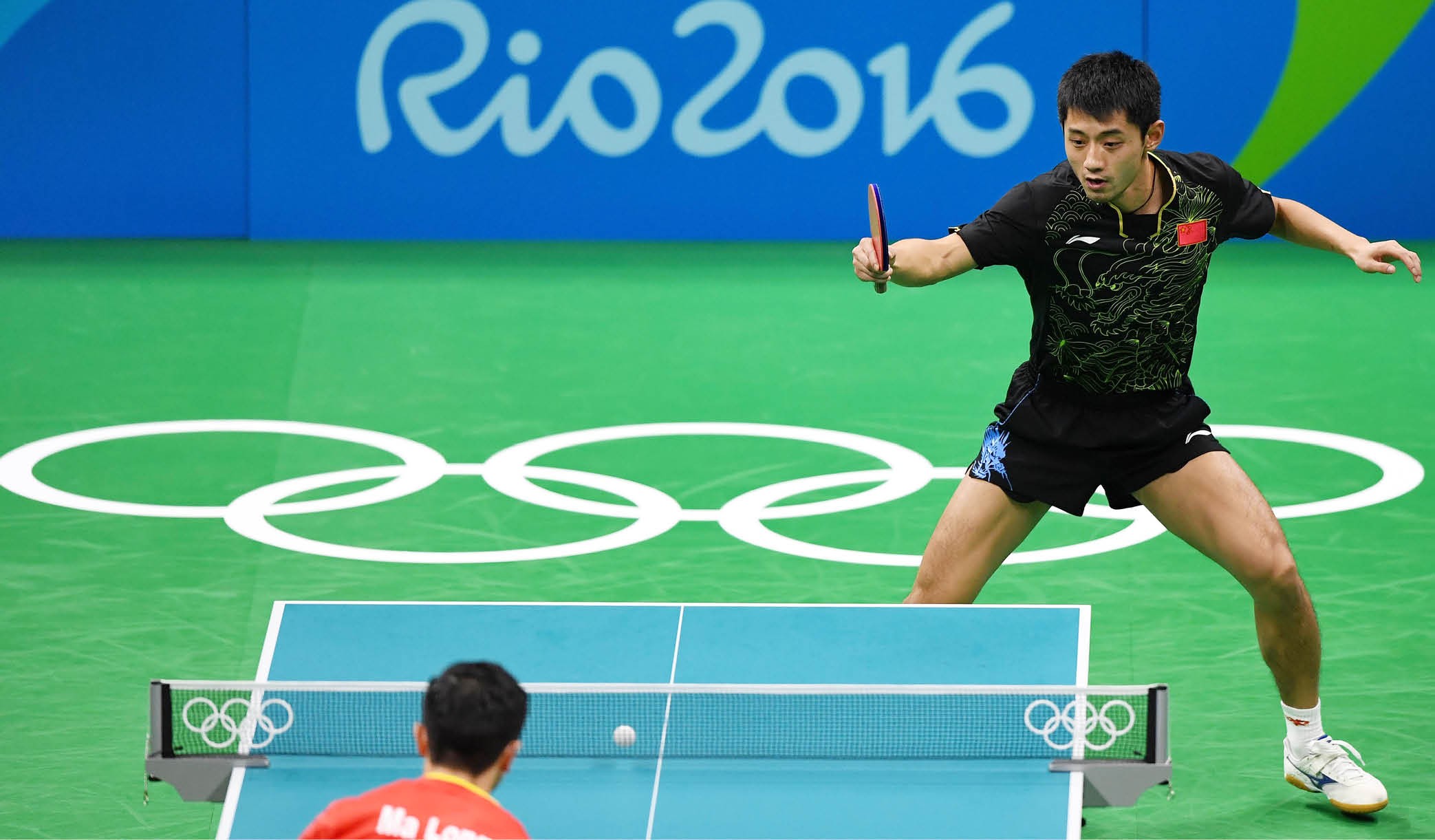 2016年8月11日,里约奥运会乒乓球男子单打决赛中,张继科与马龙。