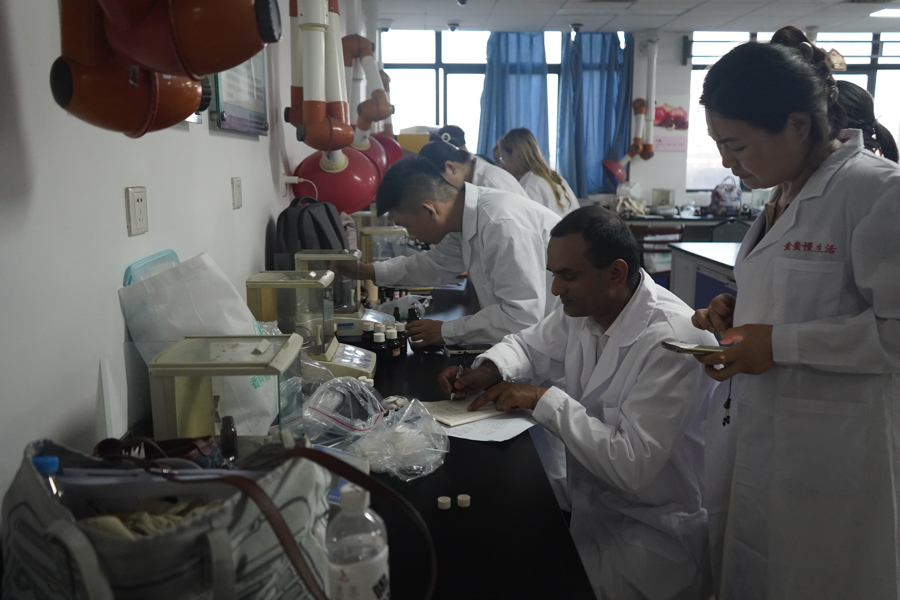 学员们在上应大“调香师”培训的实验室里闻香、调香。