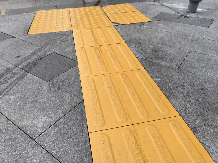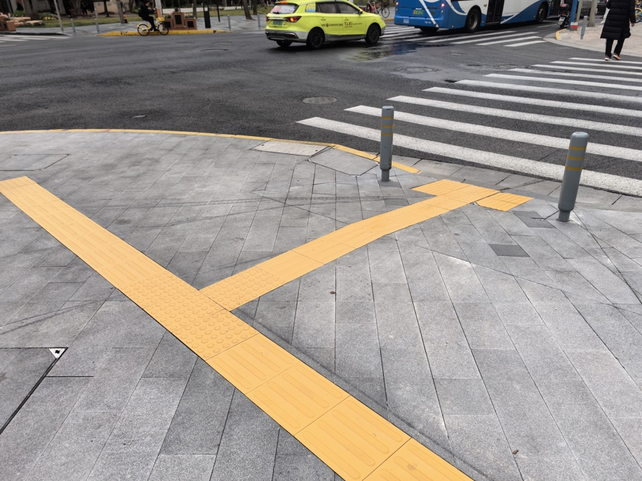 东说念主行说念与横说念线衔尾处设有3个无拦阻缓坡,居中的盲说念也随之歪斜。市民跌倒多发生在缓坡处。