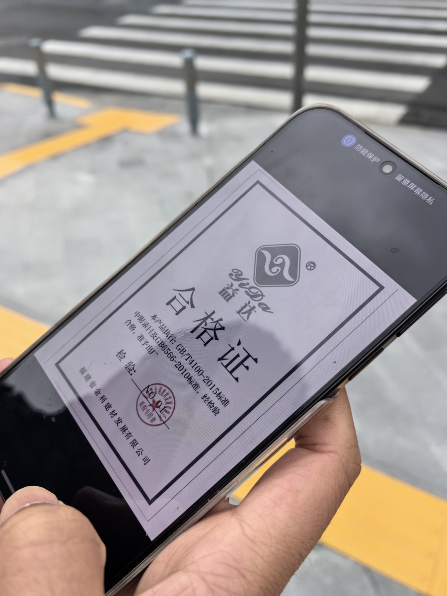 及格证披露,四川北路虬江路路口所使用的盲说念砖,是由“福建省金利建材发展有限公司”分娩的“益达”牌陶瓷盲说念砖。
