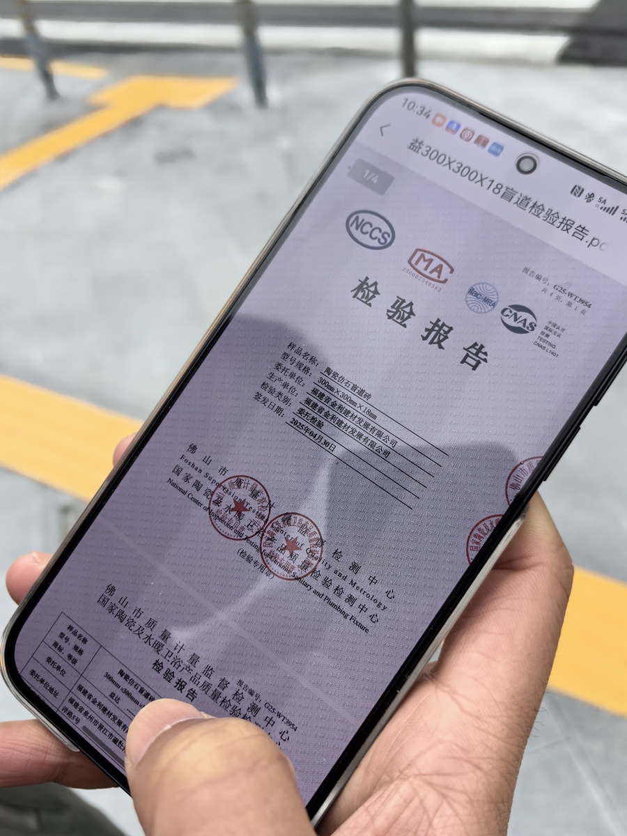 真如市民所质疑的那般,陶瓷盲说念砖存在选材失当?问题恐莫得那么浮浅。《无拦阻运筹帷幄方法》中明确,“盲说念型材名义应当防滑”。需要防滑到什么进程?2022年7月11日,国度发布了“陶瓷盲说念砖国度圭臬(GB/T41661-2022)”,并于2023年2月1日实施。其中要求,陶瓷盲说念砖的防滑性能在“湿态”时通过“摆锤法”测试要达到“P5”级。泛泛地认知,在瓷砖边界“P5”已是防滑性能的最高品级,有关产物常用于拍浮池边等区域。记者求教了业内东说念主士得知,尽管“GB/T41661-2022”仅仅推选性国标,不具备强制着力,但在各人工程设立和波及安全包袱的场景中,推选性国标通常被视为产物是否及格的参考目标,是产物的质地底线。四川北路虬江路东说念主行说念盲说念所用的产物,达到国标要求了吗?