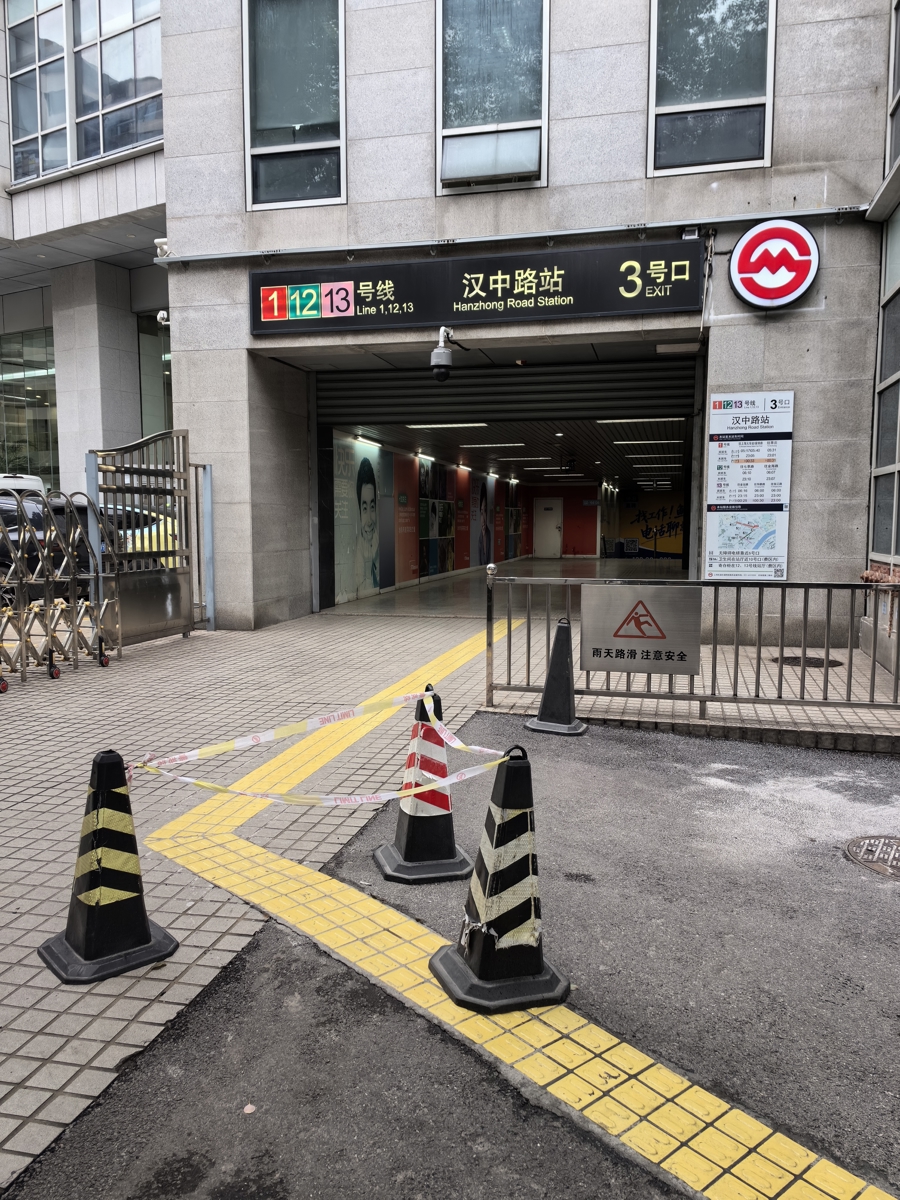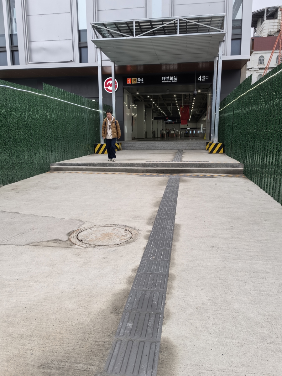 地好汉中路站的2号口、3号口外侧,出站通说念露天区域铺设了黄色陶瓷盲说念砖。地铁方在陡坡盲说念上端开端处扬弃了路障。