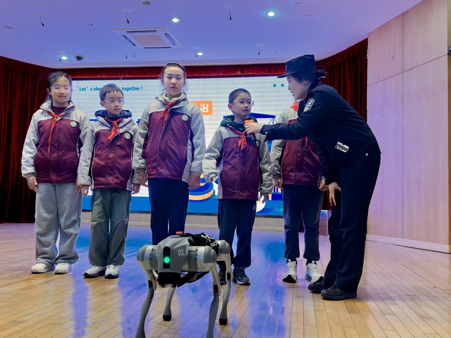 “淌若网友要帮你代练游戏,找你借账号密码,你会怎么作念?”今天是申城中小学开学第一天,在顾村中心校的大会堂内,一个非凡的“助教”用充满科技感的语音一霎焚烧了全场腻烦。这是上海宝山警方为孩子们用心准备的“开学第一课”,而这位明星“助教”,恰是警用机器狗“闪电”。