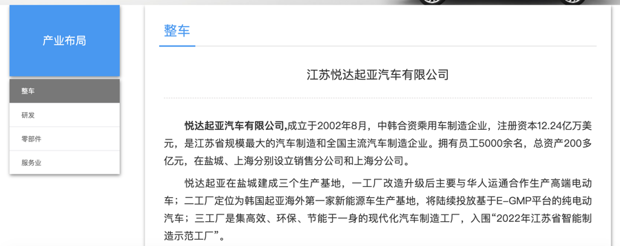 结伙车期间,盐城是江苏的汽车重镇。悦达起亚在盐城建成三个坐褥基地,年产能策画可达89万辆,其中悦达起亚第一工场投产于2002年,年产能14万辆。2017年3月起,起亚汽车在中国市集的销量执续下滑,2019年6月,悦达起亚第一工场认真晓谕停产关闭。