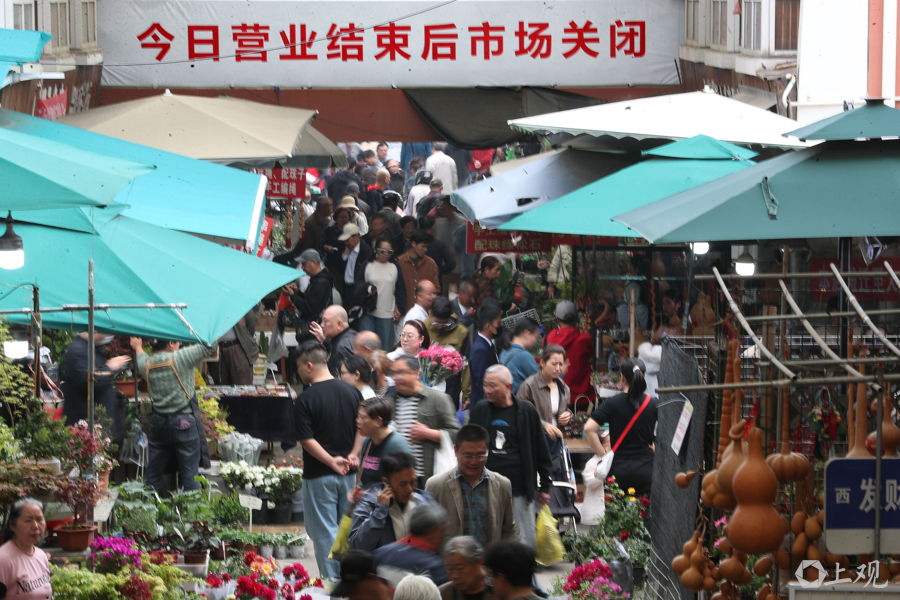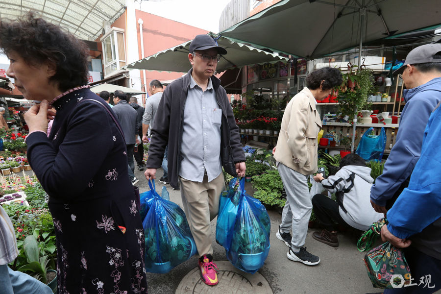 4月10日早上8点半,陈祝跃拉来一车“多肉”摆上摊位;住户牵着小狗请东说念主襄助在门口留影;二楼平台上使命主说念主员换上“本日营业戒指后阛阓关闭”的横幅。